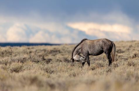 In this situation, I had been sitting in a fixed position in the sage brush for over thirty minutes while photographing a group of wild horses that were ~400 feet away. The landscape and light was amazing. The clouds were a spectacular backdrop and I was hoping to frame the horses, landscape and clouds all in one image.