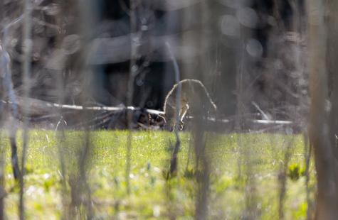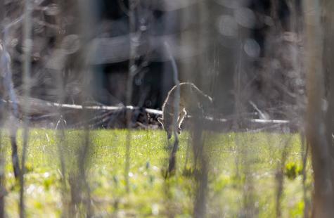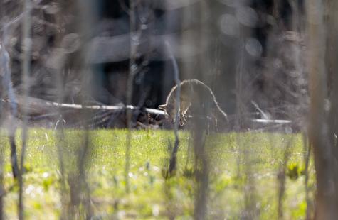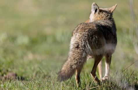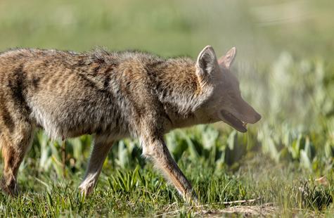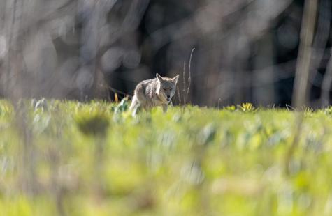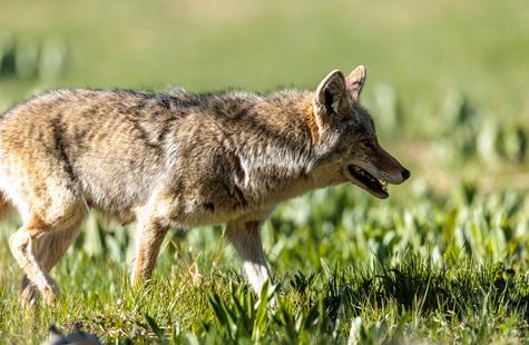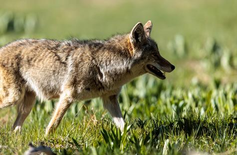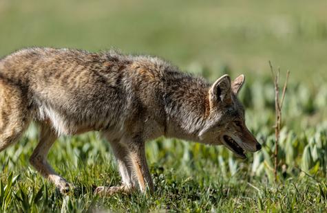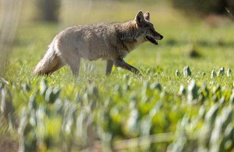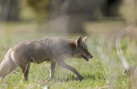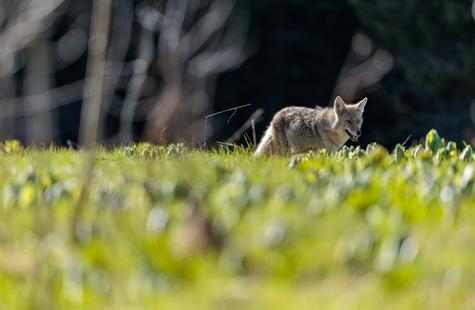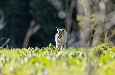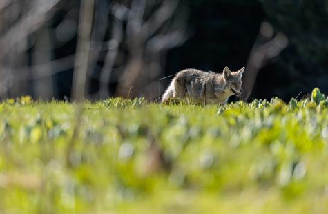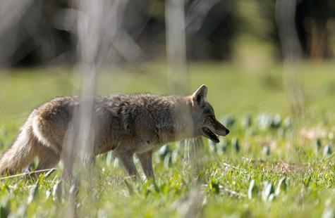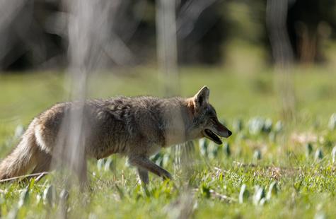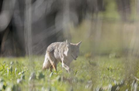 After spotting this coyote hunting in a meadow, I crouched down behind a large fallen aspen and a patch of smaller aspen trees to try and photograph the hunt. Much to my surprise, she never real...
