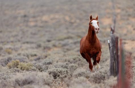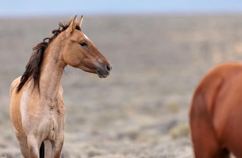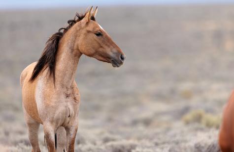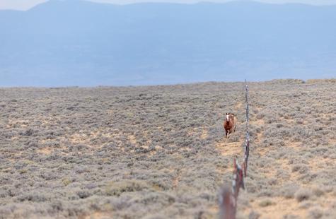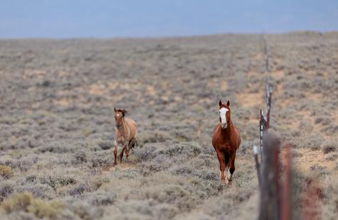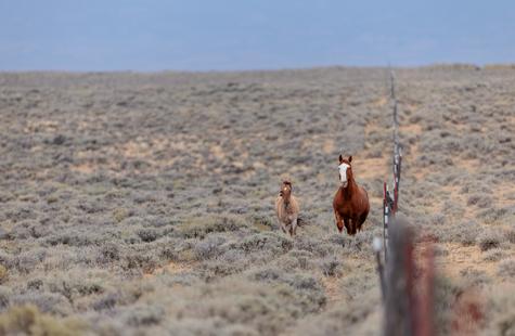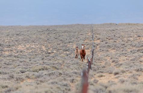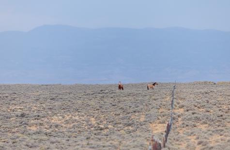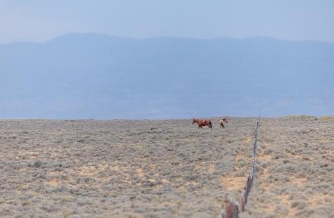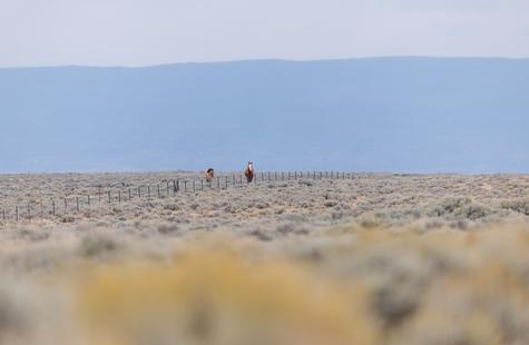 Thirty or so minutes into photographing a small group of wild horses (not pictured) that were grazing on the northern boundary of the Sand Wash Basin herd management area, I noticed a pair of horses on the opposite side of the fence. Roughly a half-mile away, the pair was slowly drifting our direction down the fence line. At first I didn't think much of it, but pretty quickly I decided to walk over to the fence because it seemed like they may keep coming my way.