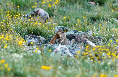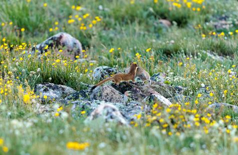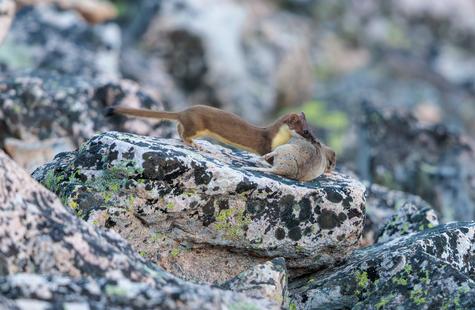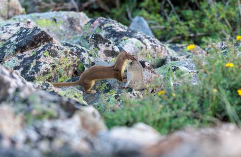 While most of the marmots were out enjoying fresh spring greens, a long-tailed weasel earned its reputation as a voracious hunter. The weasel raided the marmot colony and took at least four young...