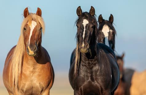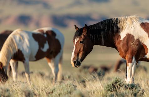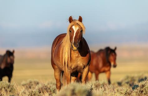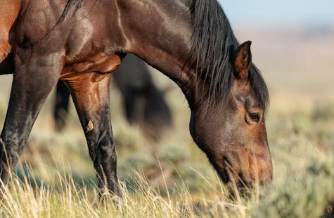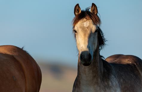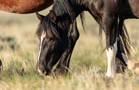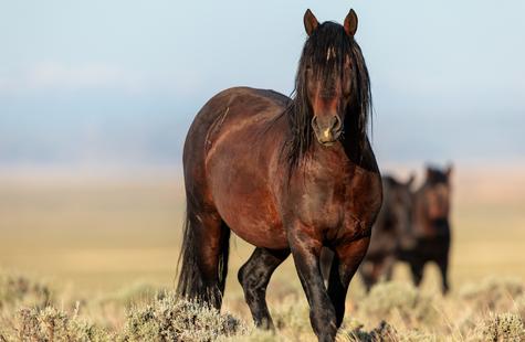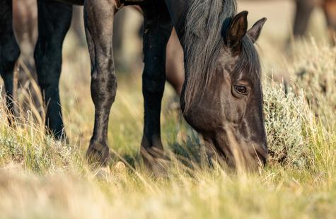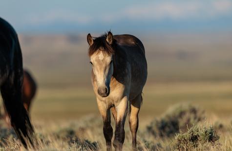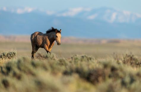 I spotted a few of the horses not far from where they had been the prior day. I couldn't see the whole group because of the rolling hills, but with enough of them visible I was able to get a read on where they might go next. I walked out into the sage 1,000 or so feet away from the horses that I could see and I waited. Slowly but surely they drifted my direction. They knew that I was there, but had no adverse reaction or visible concern. Eventually, all of them would walk right around me on both sides. At times I was at the center of them all. Some came close to take a closer look, but most just slowly walked on by.