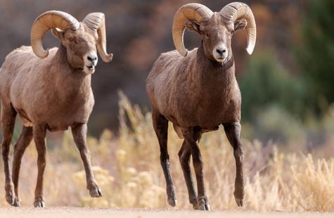 On the way back though, the light steadily improved and eventually I stumbled upon a really nice group of bachelors on the trail. The canyon "trail" is really just a big dirt road that's closed off to cars, and it's a very popular spot for hikers, bikers and runners. The bighorn are accustomed to the locals and the locals are used to the bighorn, so everyone pretty much just goes on about their business when the sheep join the people on the trail-road.