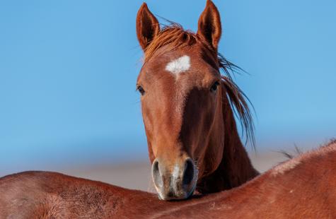 A small family of three wild horses poked their heads up in the distance. A mare, a stallion and their young colt. The adults seemed indifferent to my presence, but the colt couldn't stop looking at me with inquisitiveness.